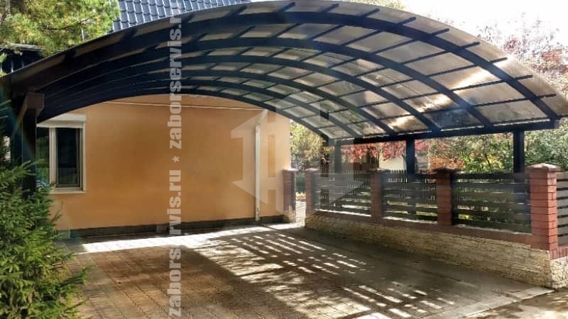 Если вы выберете крышу из профлиста, то под ней будет довольно темно, и вам придётся дополнительно устанавливать освещение. Используя поликарбонат, вы получаете сразу два преимущества: защиту от непогоды и естественное освещение.
