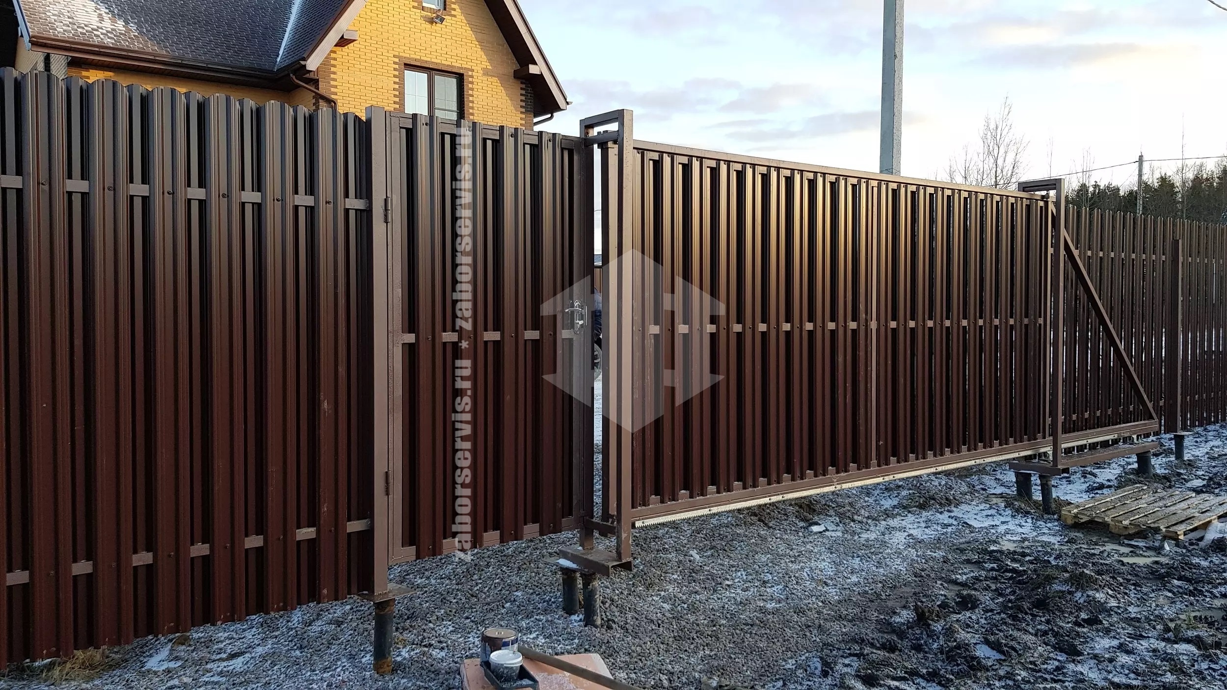 • Ворота откатные из штакетника на сваях Артикул: S277E3258