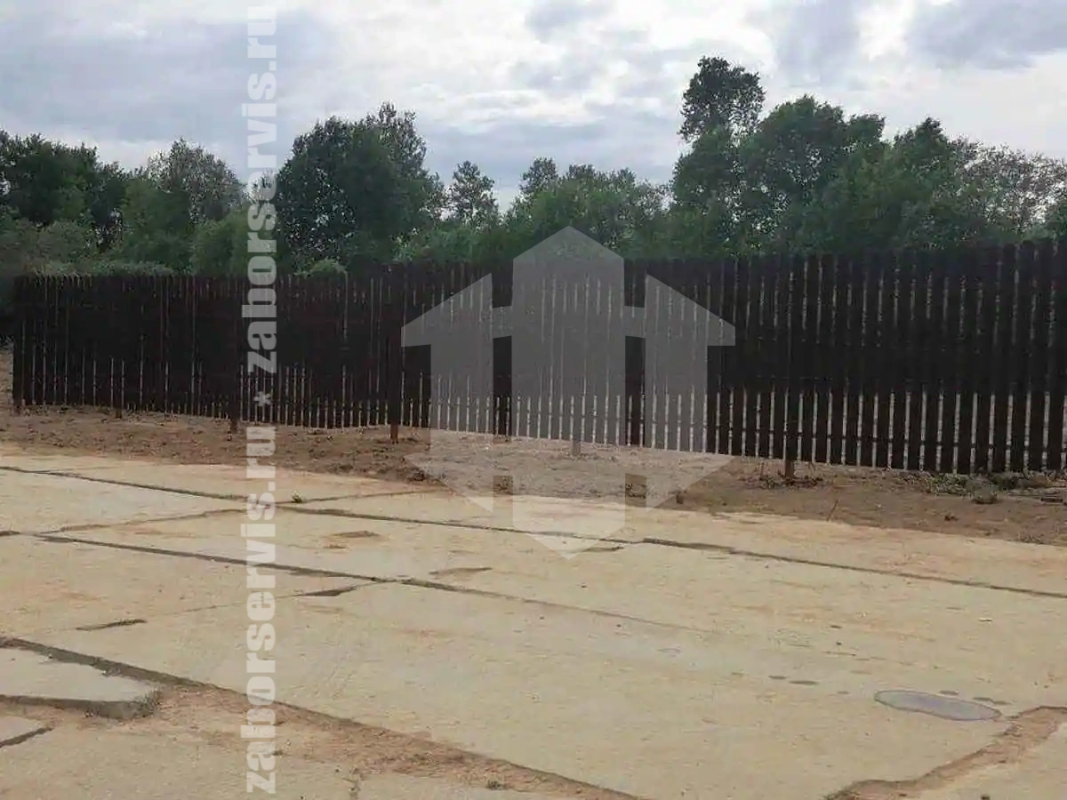 Забор из металлического штакетника коричневый 38 метров