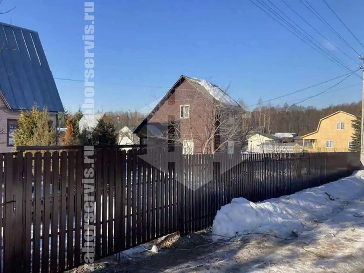 Забор из металлического штакетника коричневый 74 метра