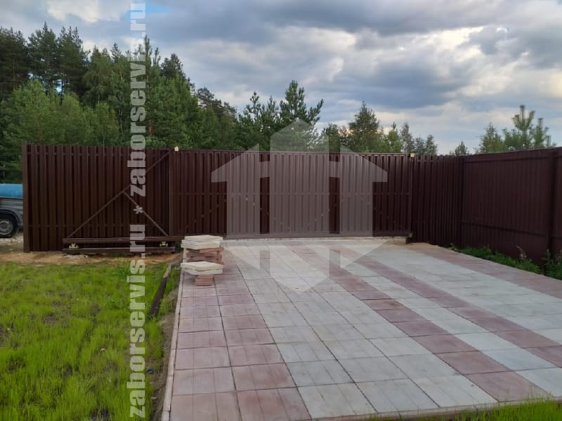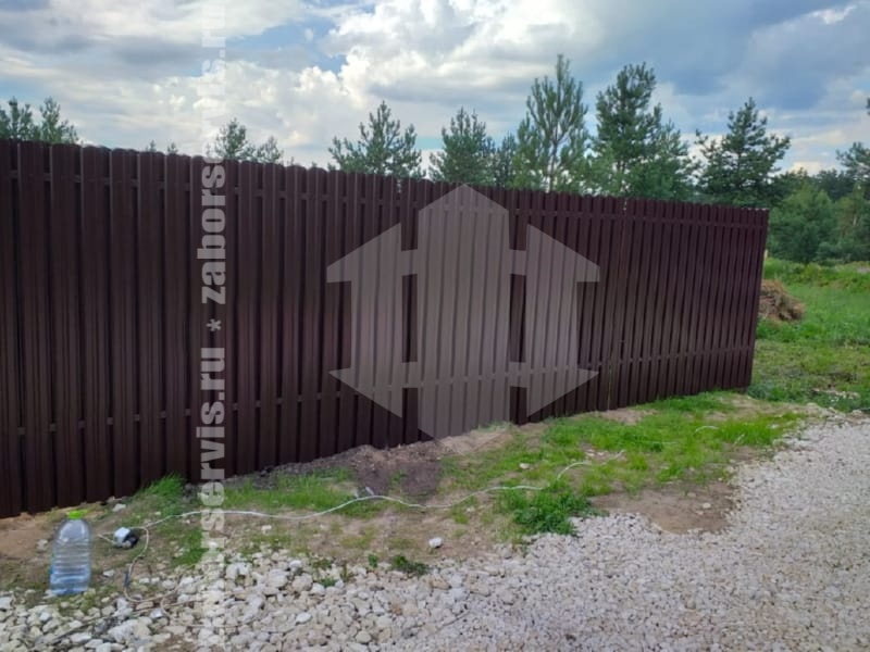 • Забор из металлического штакетника коричневый Артикул: S33E69