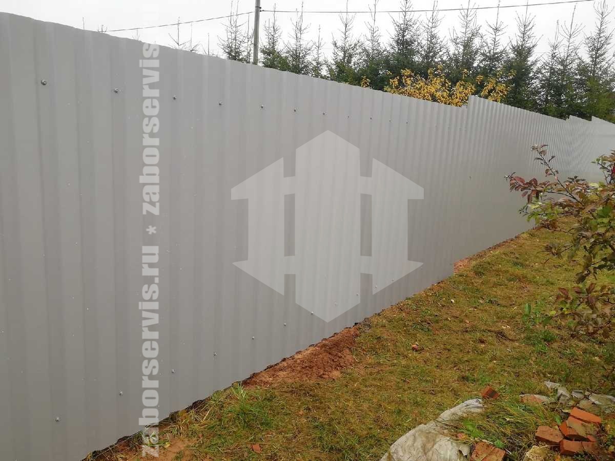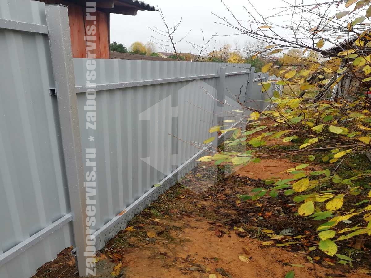 Если не брать во внимание процедуру согласования, то на монтаж 35 метров забора из профнастила понадобится один дней. Все материалы для выполнения есть всегда в наличии.